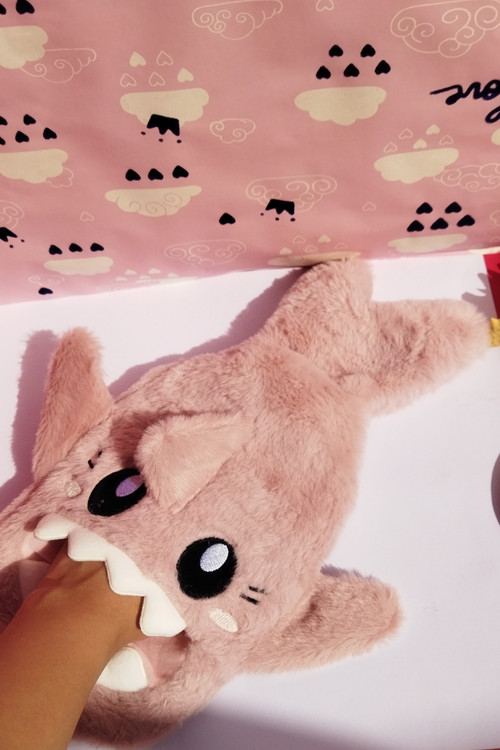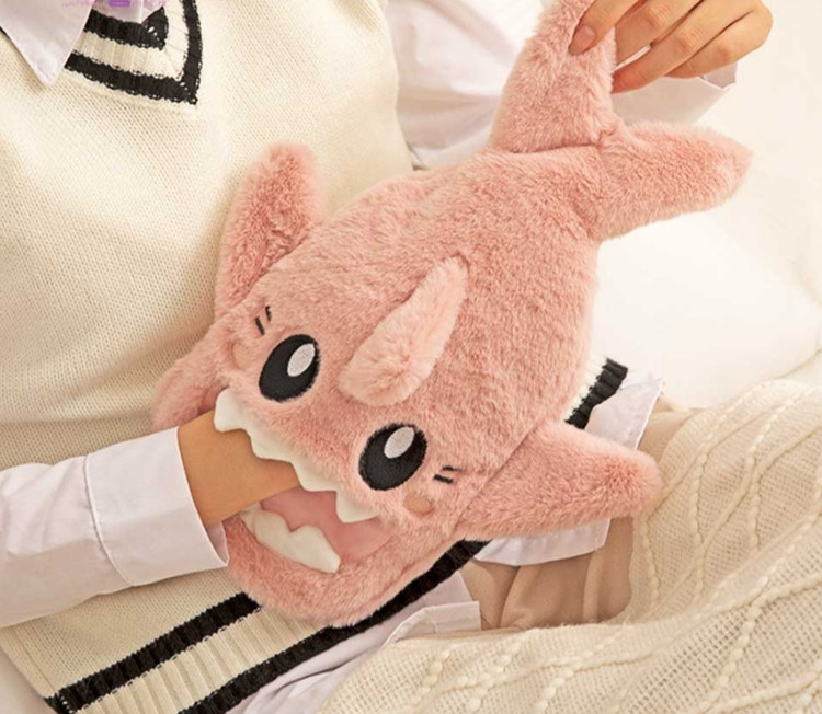 کیسه آب گرم پشمالو کوسه خندان فانتزی دارای جای دست صورتی
